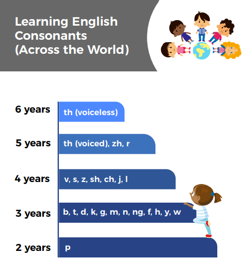 McLeod, S. (2024). Learning English consonants. Charles Stuart University. Website: https://www.csu.edu.au/research/multilingual-speech/speech-acquisition/learning-english-consonants
